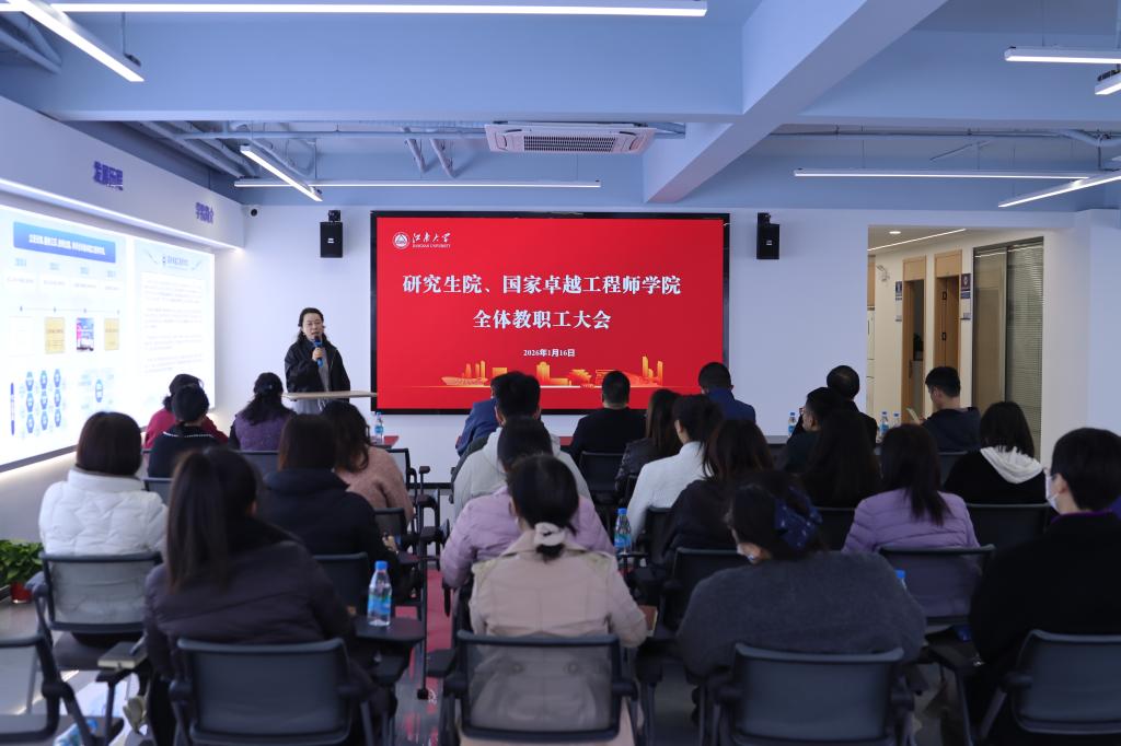 1月16日上午,江南大学研究生院、国家卓越工程师学院全体教职工大会在行政楼B105顺利召开,部门全体教职工参会。会议由国家卓越工程师学院党委书记奚晓岚主持。